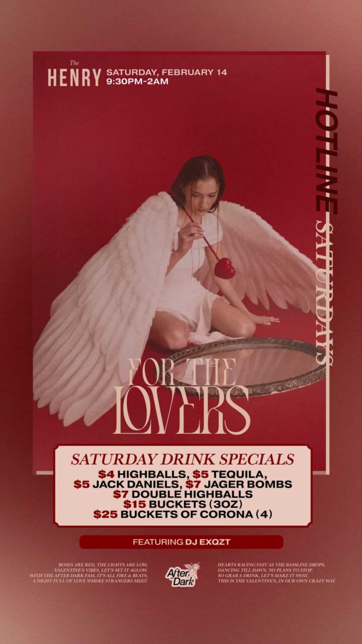 Come join us for a romantic evening at The Henry Public House this Valentine’s Day! Get ready For the Lovers Valentine’s Night this Saturday night. Whether you’re single, taken, or somewhere in between, come out and enjoy a night of great music, drinks, and unforgettable vibes. Let’s spread love and good times together!