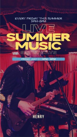 Soak up the summer vibes with Live Summer Music Saturdays at The Henry! Join us on Friday, July 11th from 5:00pm to 8:00pm for an evening of great music, good food, and refreshing drinks.